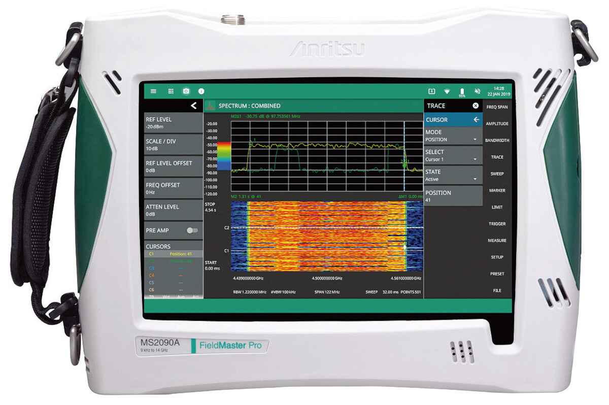 Der Echtzeit-Spektrumanalysator Field Master Pro MS2090A von Anritsu bietet eine Leistung, die bisher in einem kompakten, tragbaren Gerät nicht verfügbar war. Mit einer durchgängigen Frequenzabdeckung von 9 kHz bis 54 GHz ist der Field Master Pro MS2090A speziell dafür ausgelegt, die Testanforderungen einer ganzen Reihe anderer heute verwendeter drahtloser Technologien zu erfüllen, darunter: 5G, LTE, Wireless Backhaul, Luft- und Raumfahrt/Verteidigung, Satellitensysteme und Radar.